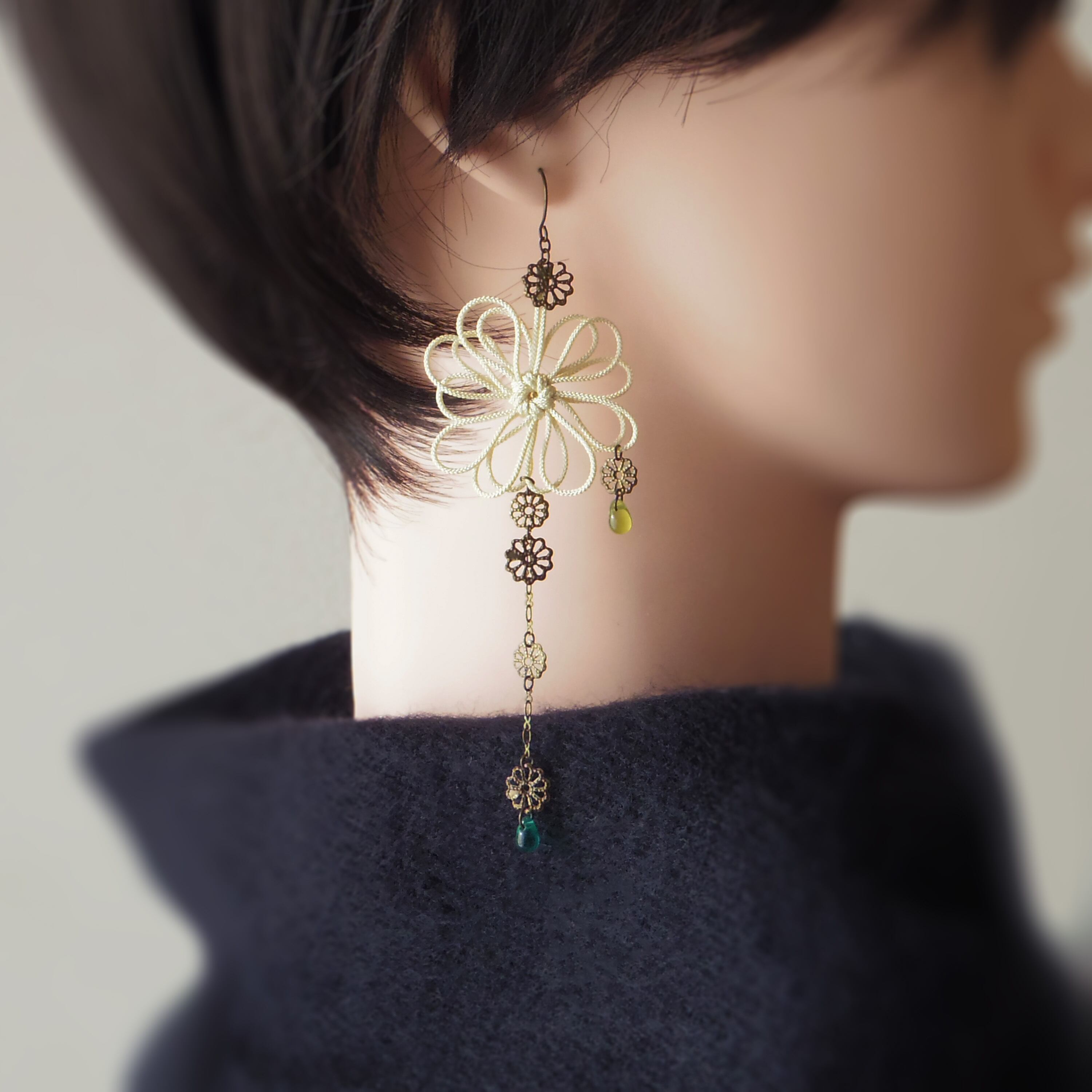 ☆このアクセサリーでは「飾り結び」という技法を用いています。「水引」や「組紐」とは全く異なるものですのでご注意ください。