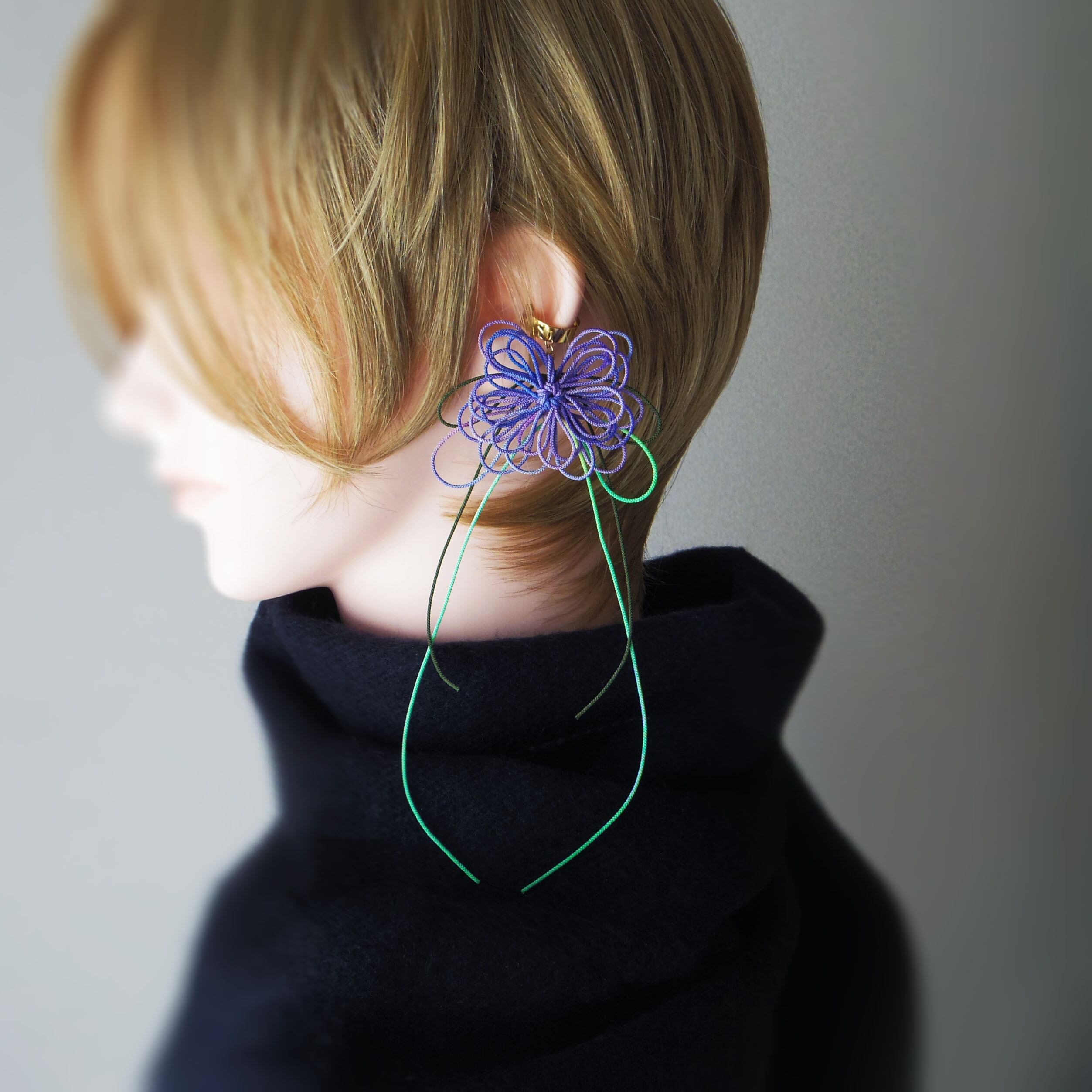 ※飾り結びは非常に繊細です。手に取る場合は必ずイヤーカフパーツのみを掴むようにし、飾り結びを直接つかんだり引っ張ったりしないでください。特に着脱時はご注意ください※