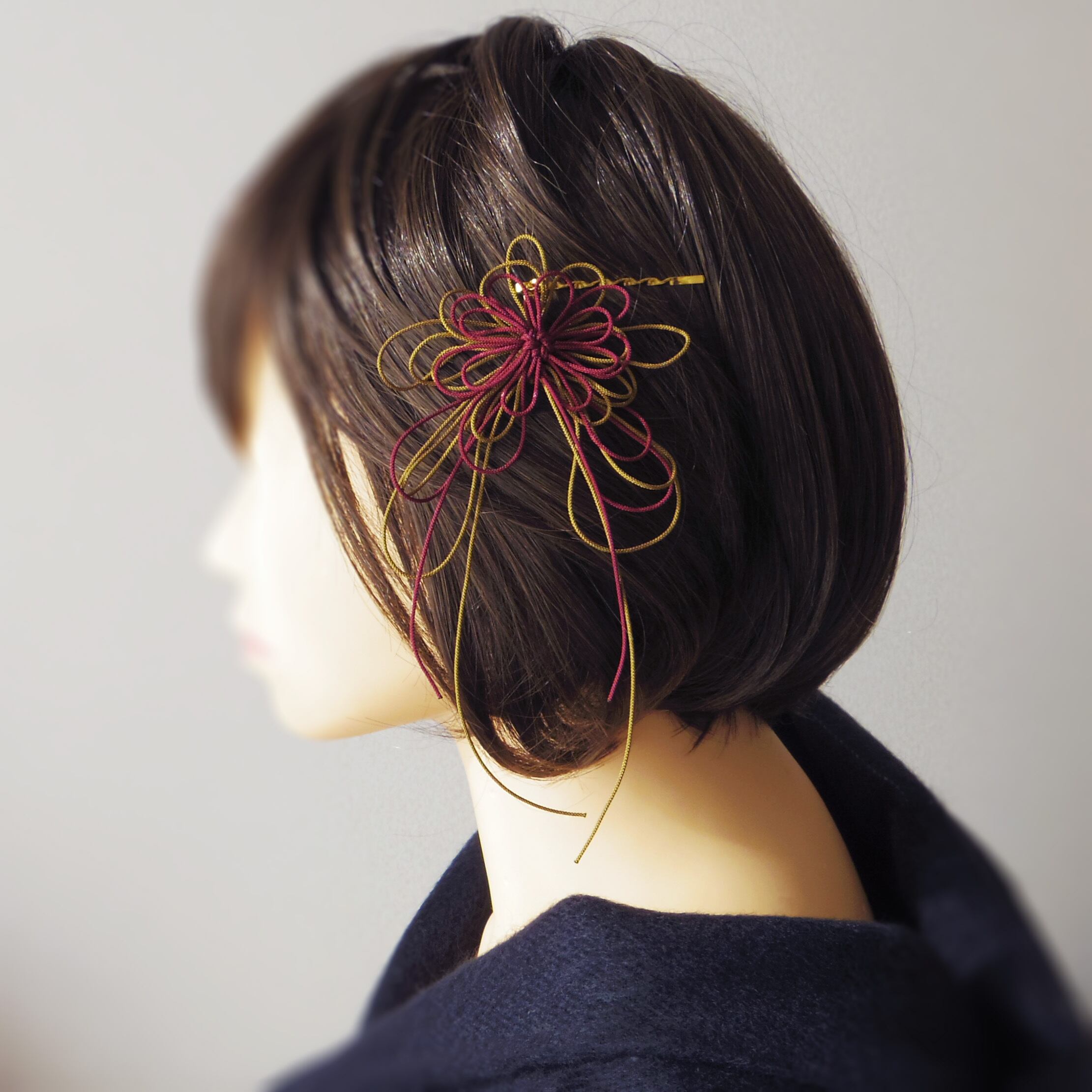 ※ヘアピン本体を手に持つようにしてください。飾り部分は繊細です。特に飾り結びは掴まないようにしてください。また、「ひねる」動きにとても弱いです。お取り扱いは充分ご注意ください※