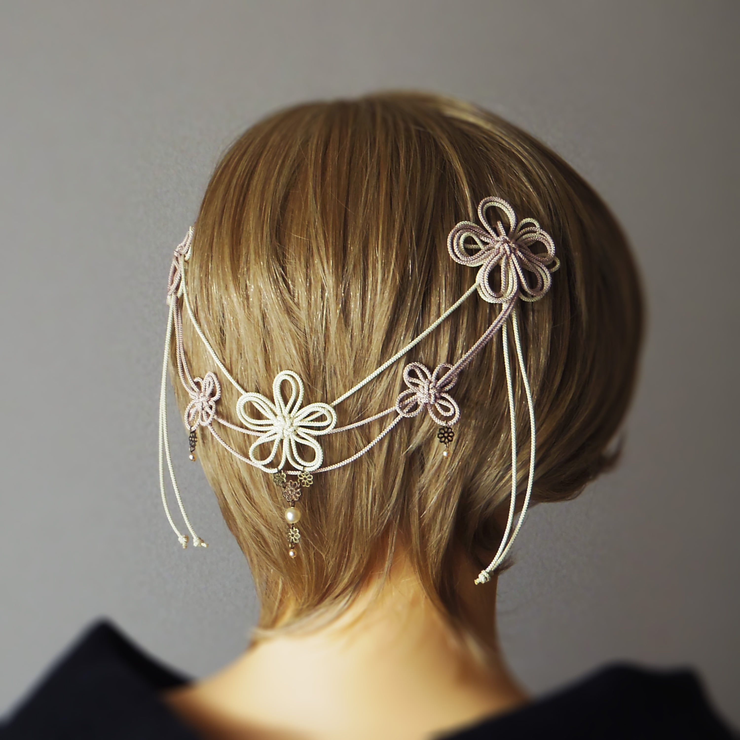 ☆このアクセサリーでは「飾り結び」という技法を用いています。「水引」や「組紐」とは全く異なるものですのでご注意ください。