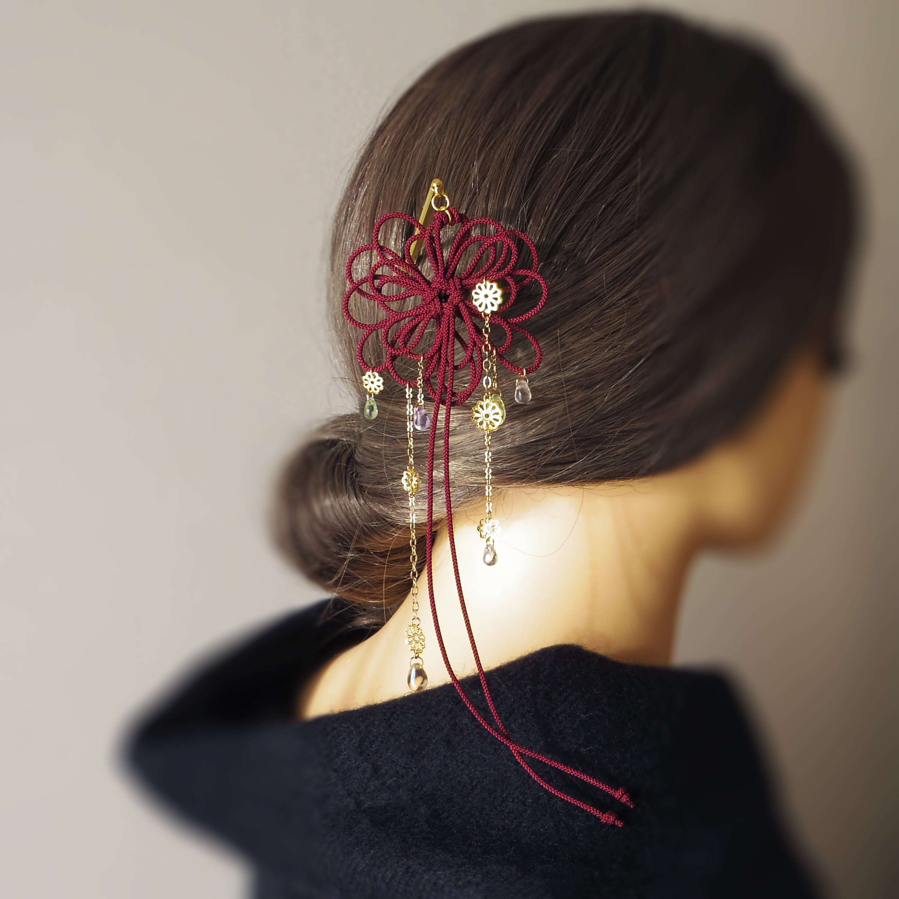 ☆このアクセサリーでは「飾り結び」という技法を用いています。「水引」や「組紐」とは全く異なるものですのでご注意ください。