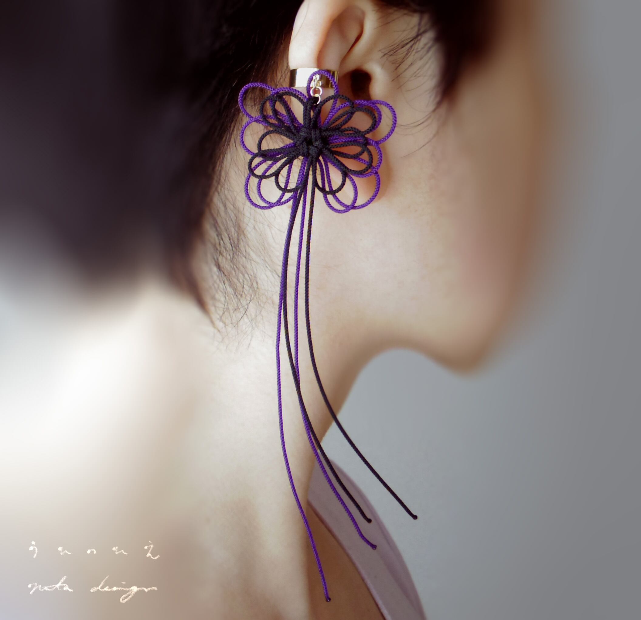 かたっぽイヤーカフ「うたつたえ」(黒×紫)