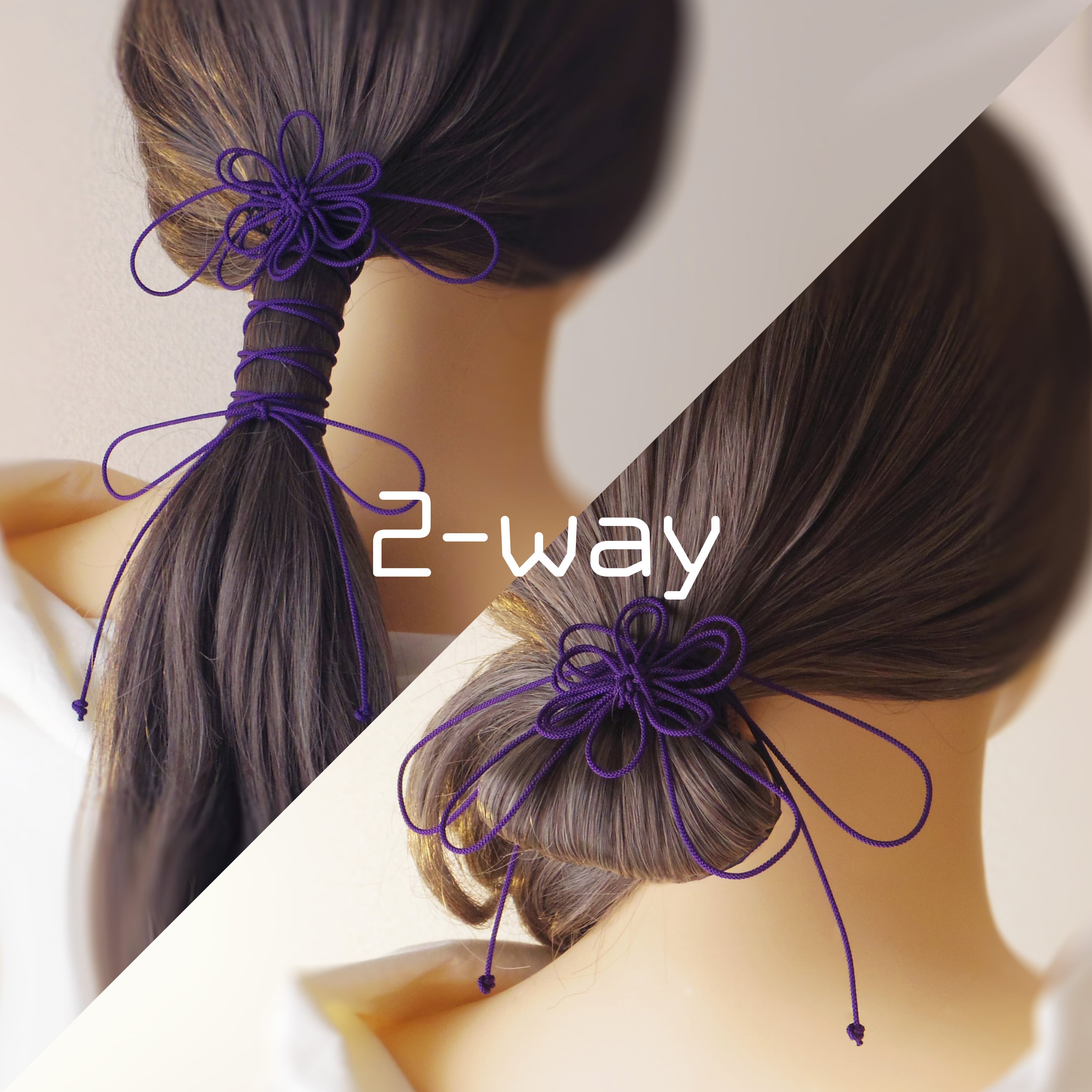 ※先にゴム部で髪をまとめ、垂れている紐部分をその上から巻きつけて使用します。画像を添付していますのでそちらを参照ください。この点についてお問い合わせ頂いてもお答えできません※