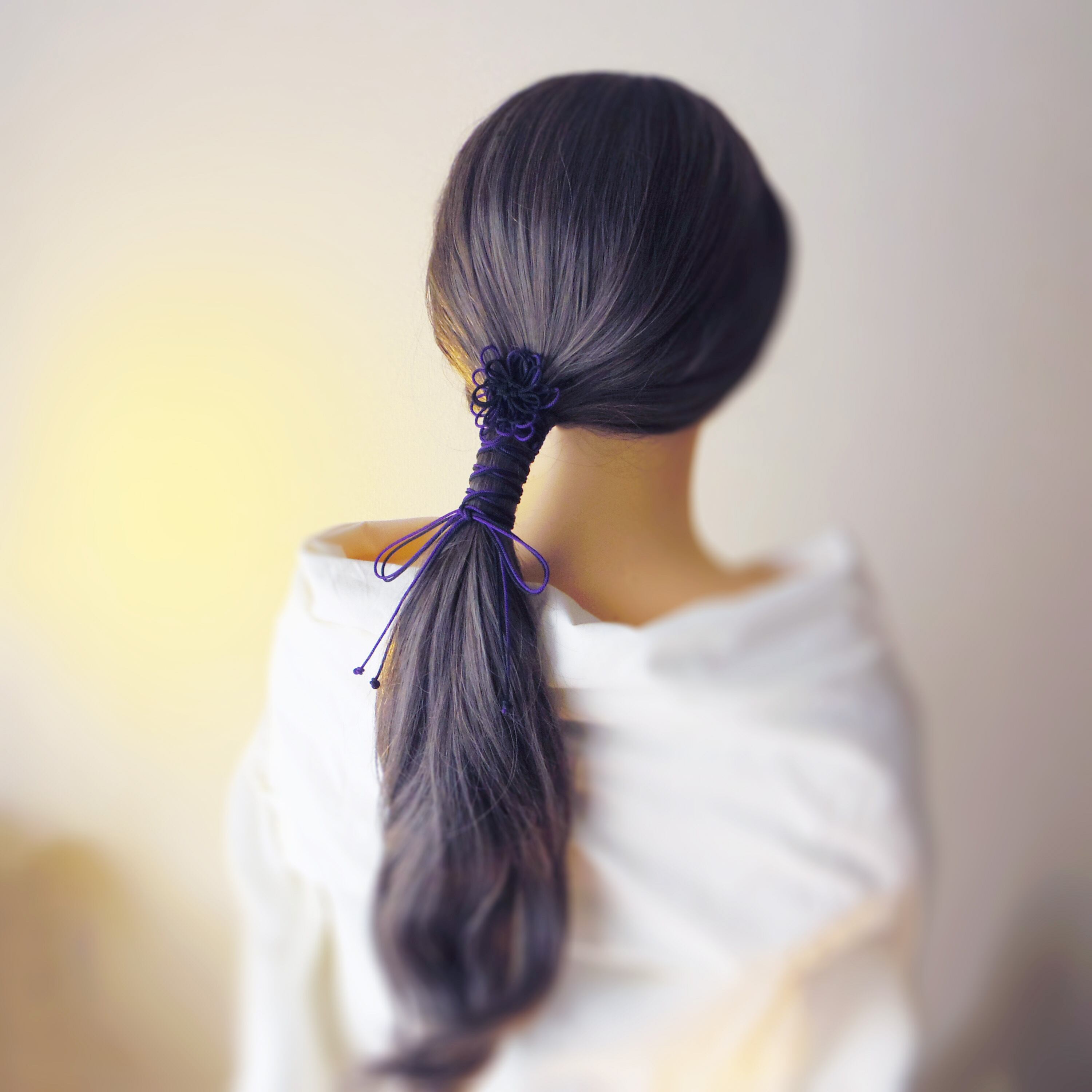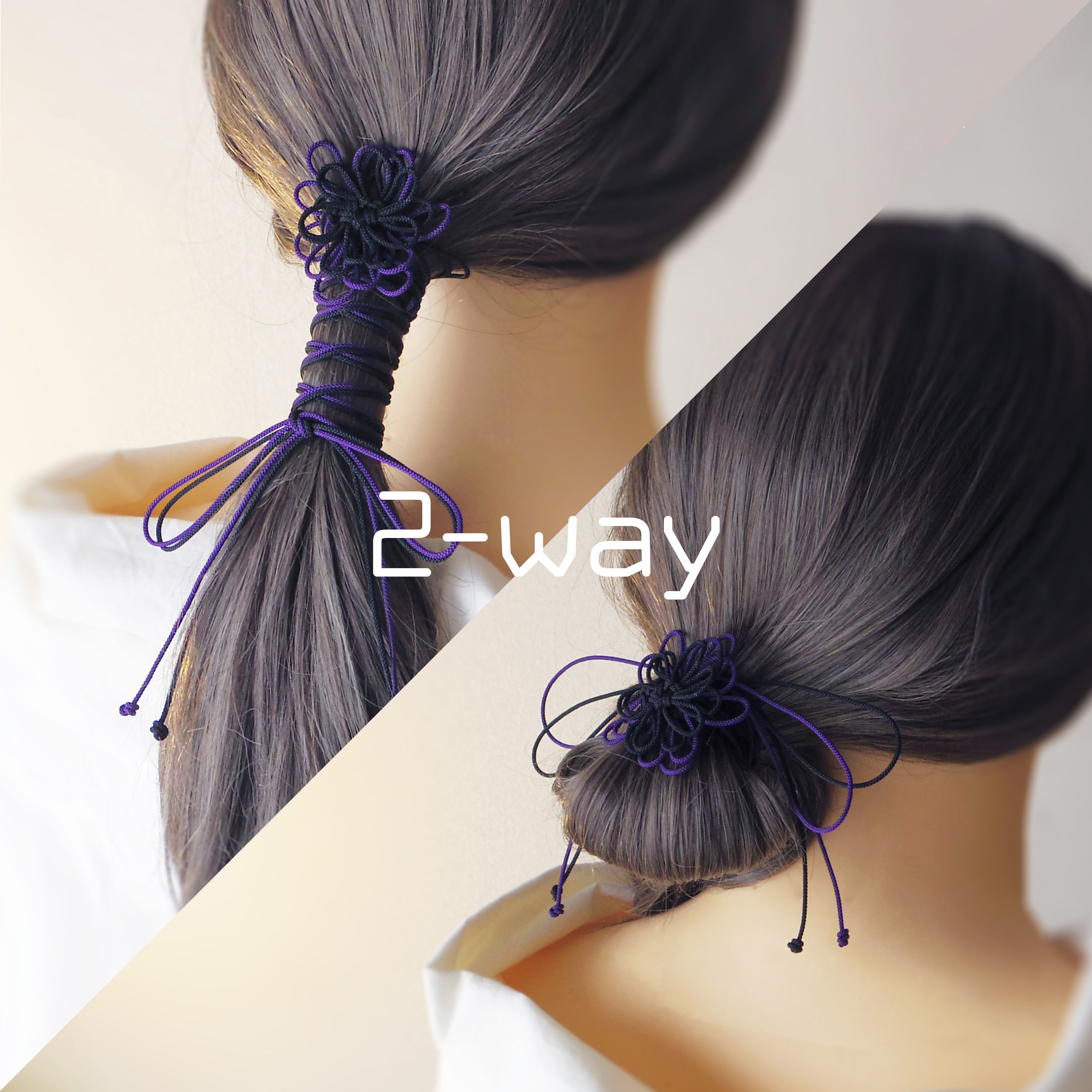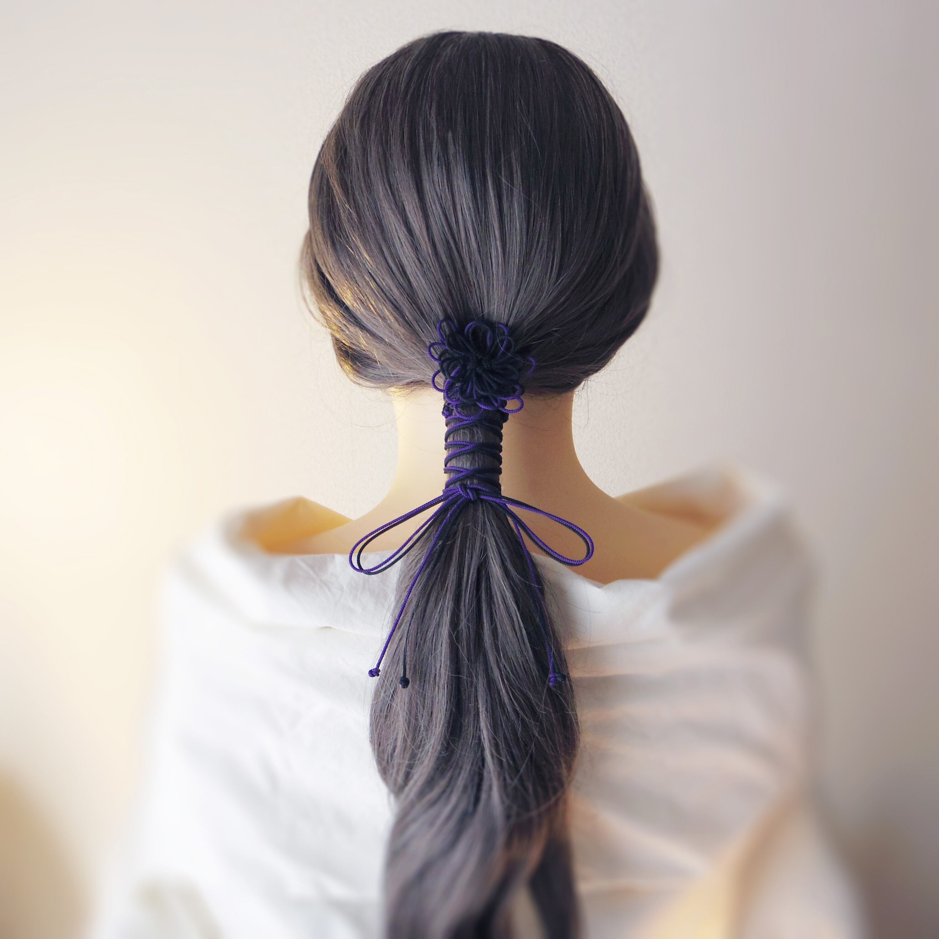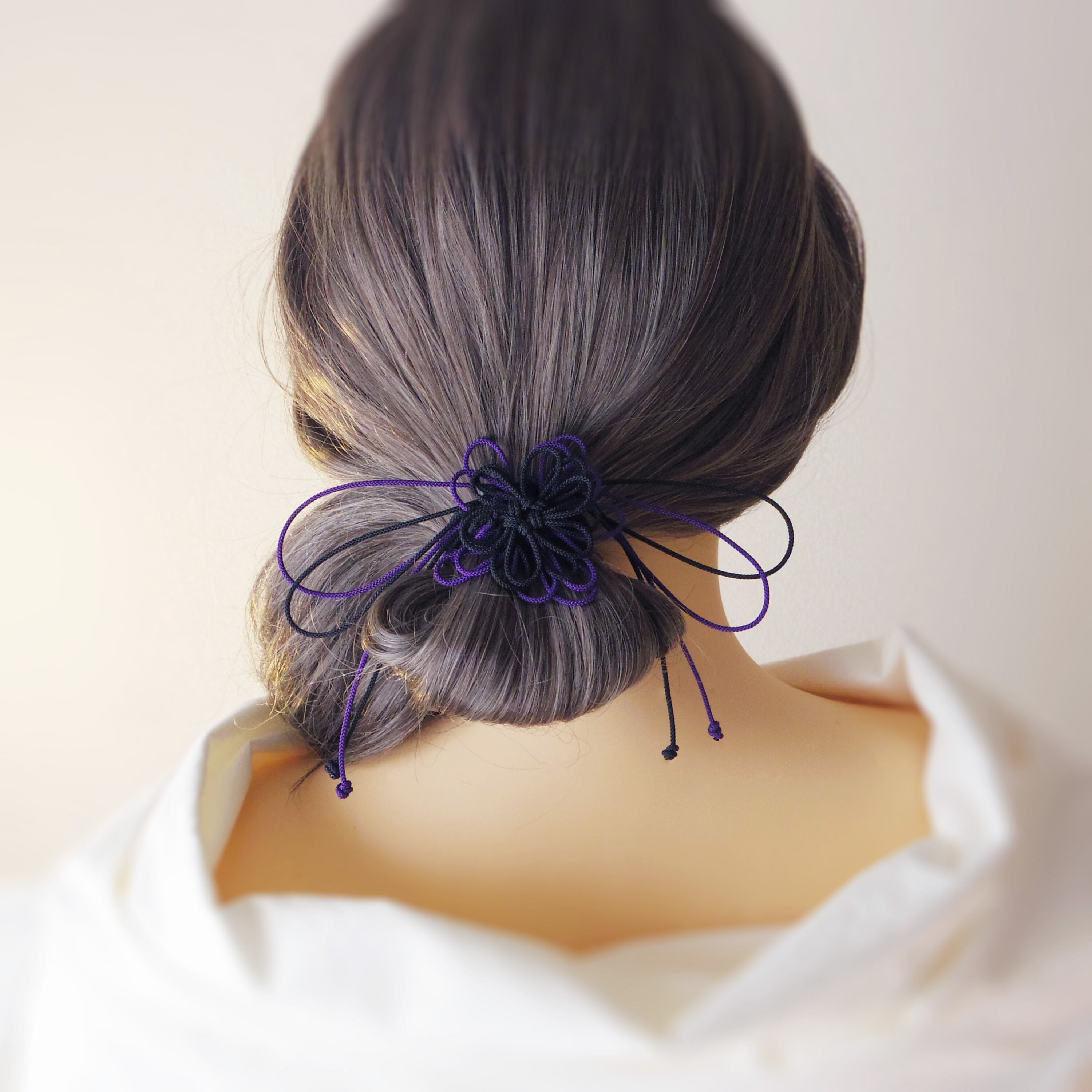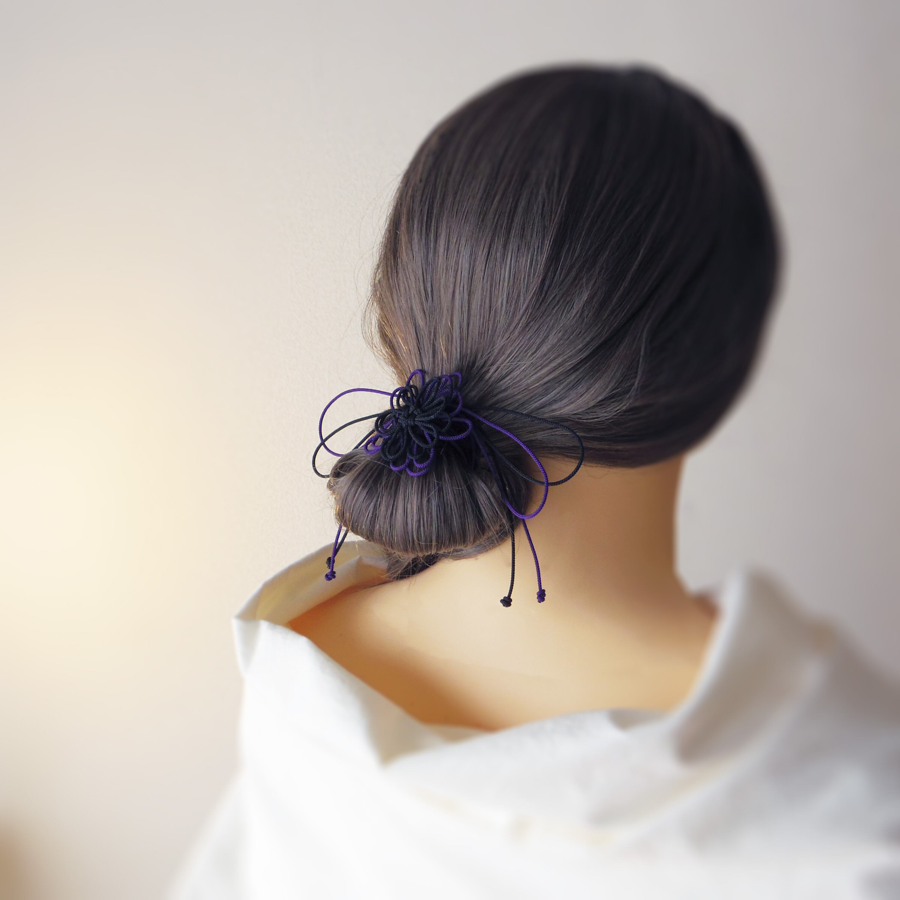 飾り結びヘアゴム「みやびやか、君」(黒×紫)|着物・浴衣に簡単アレンジで和装ヘア