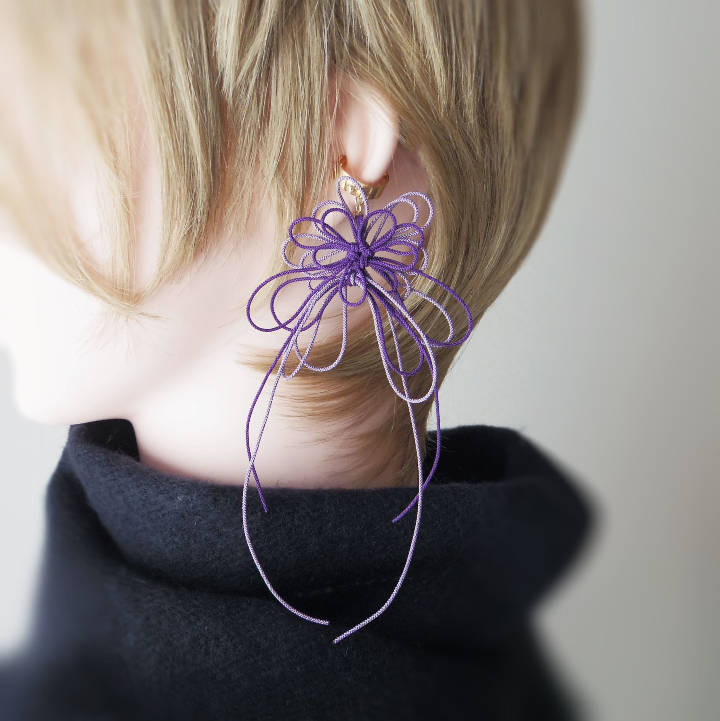 かたっぽイヤーカフ「ほとり、憂」(濃紫×淡紫)