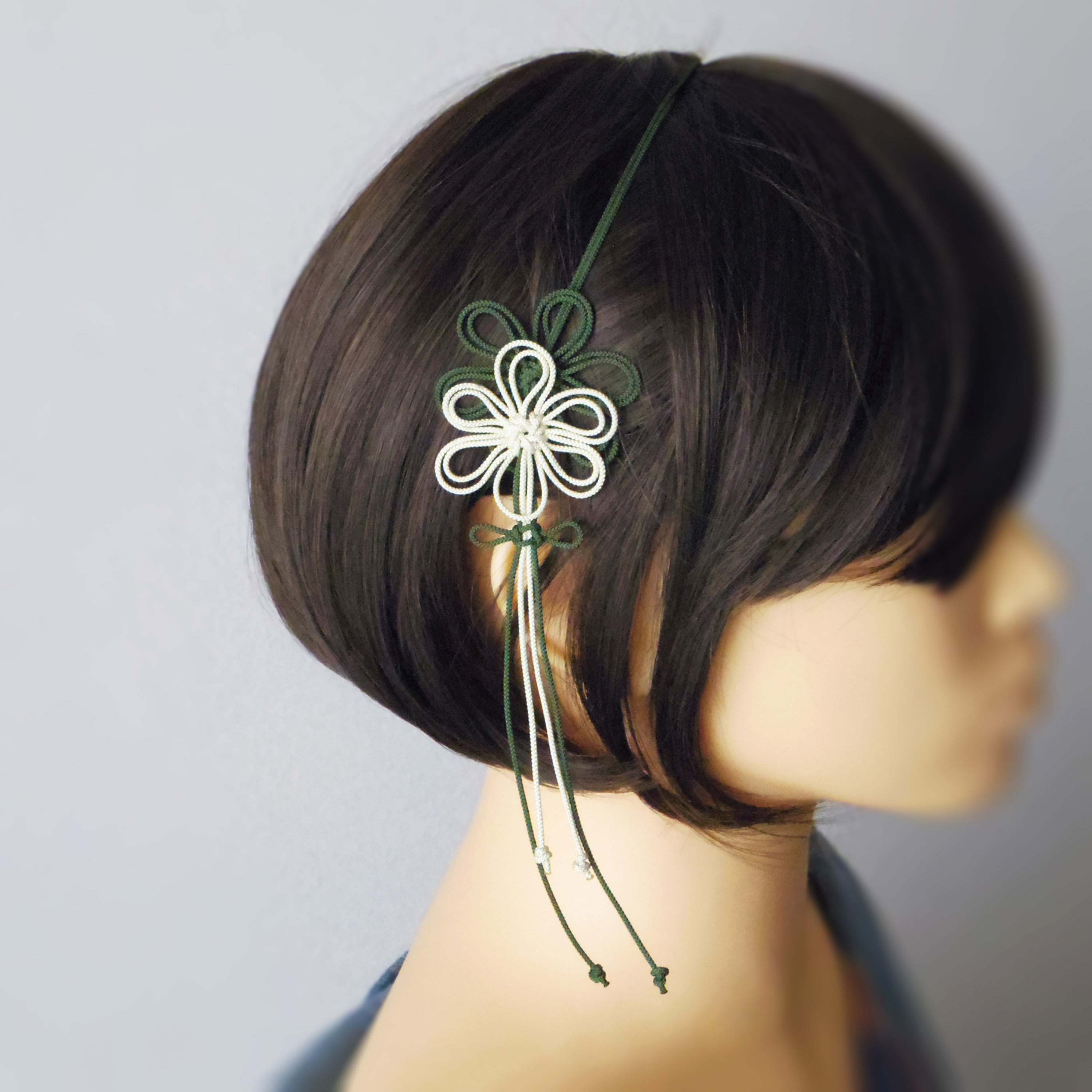 ※飾り結びはとても繊細です。着脱時はゴム側を引っ張るようにし、飾り結びに力を加えないよう充分にご注意ください