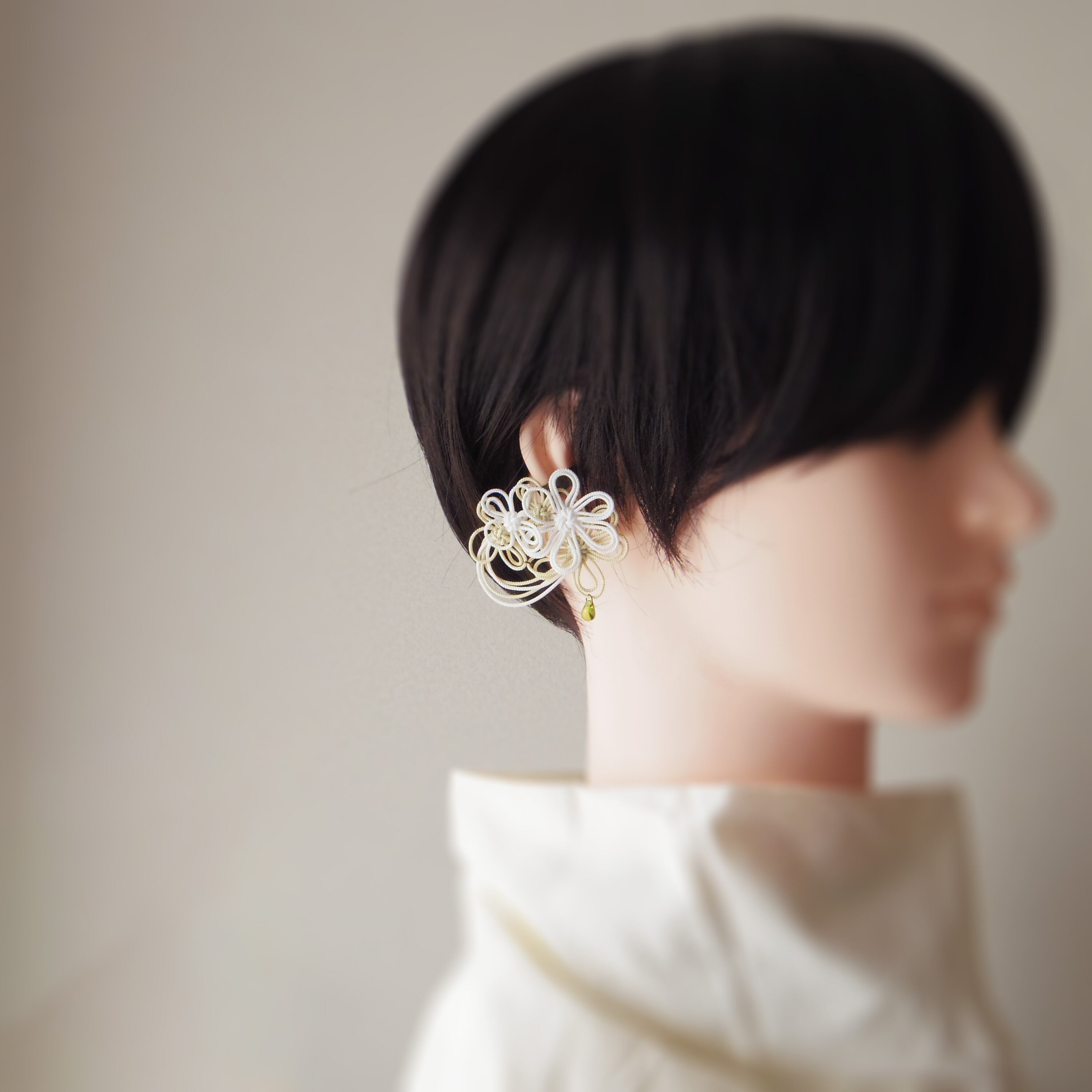 飾り結びかたっぽイヤーカフ「帆ニ霞ムウタヒ」(白×アイボリー)