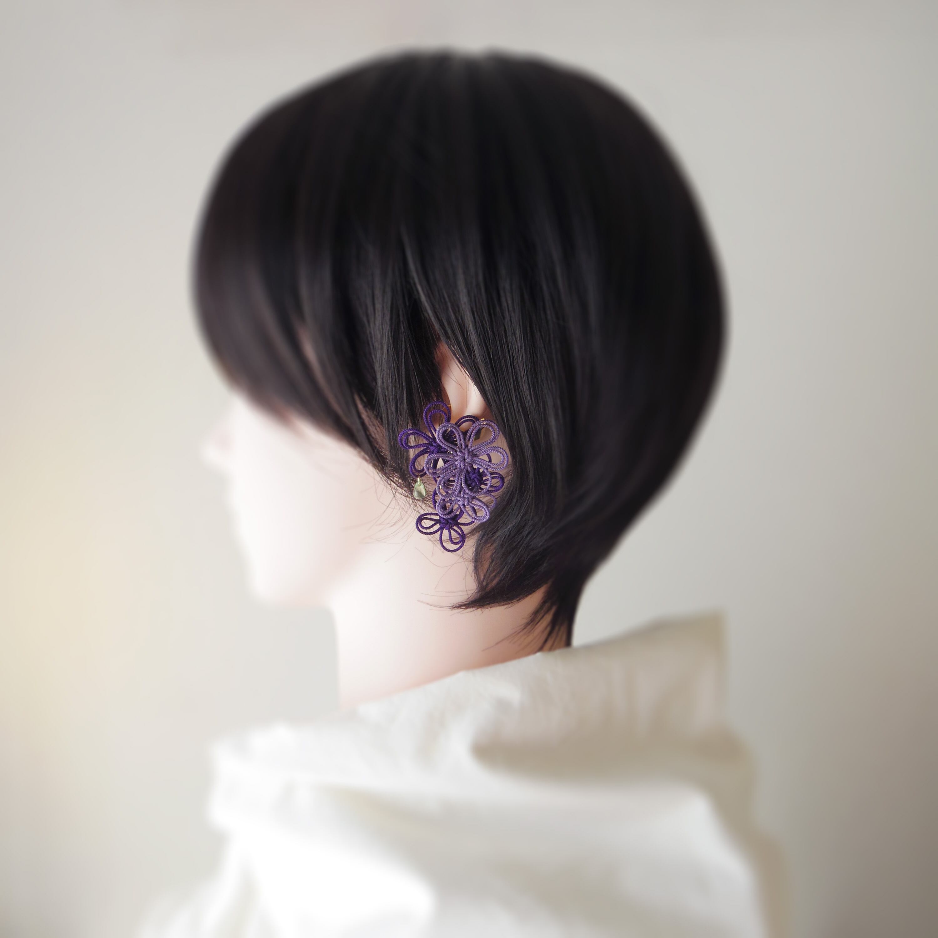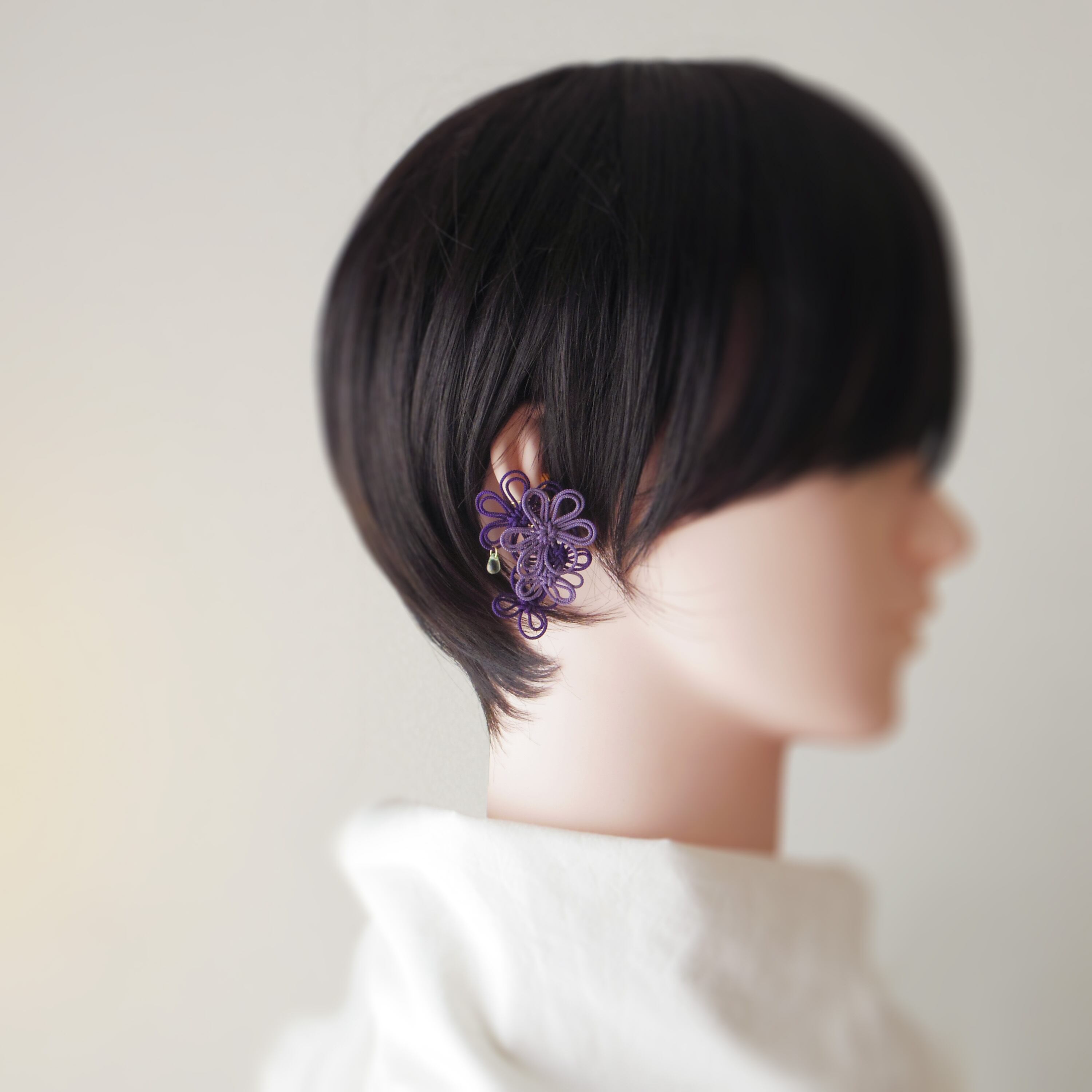 かたっぽイヤーカフ「かさね福々」(淡紫×濃紫)