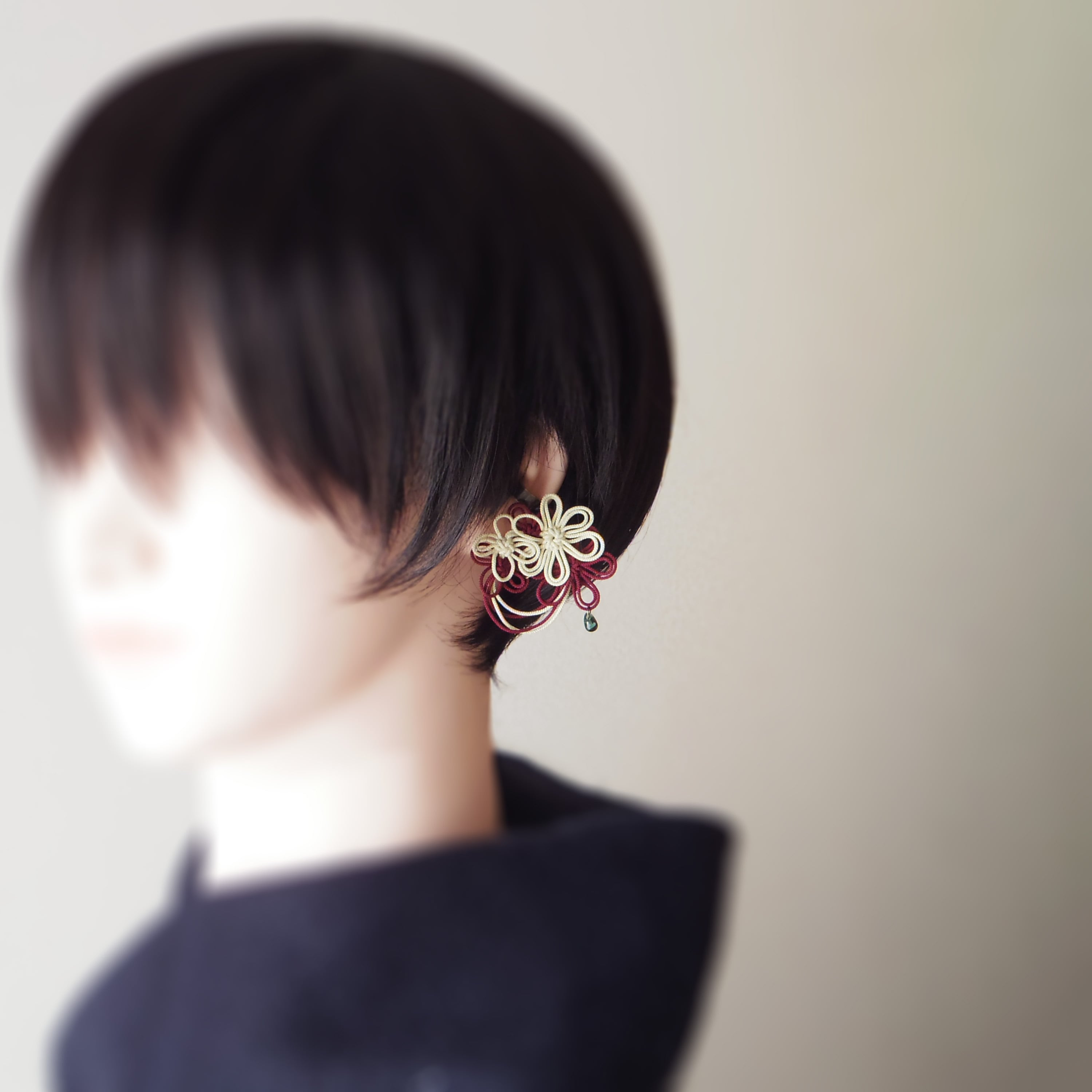 かたっぽイヤーカフ「満チ零ルオモヒ」(アイボリー×臙脂)
