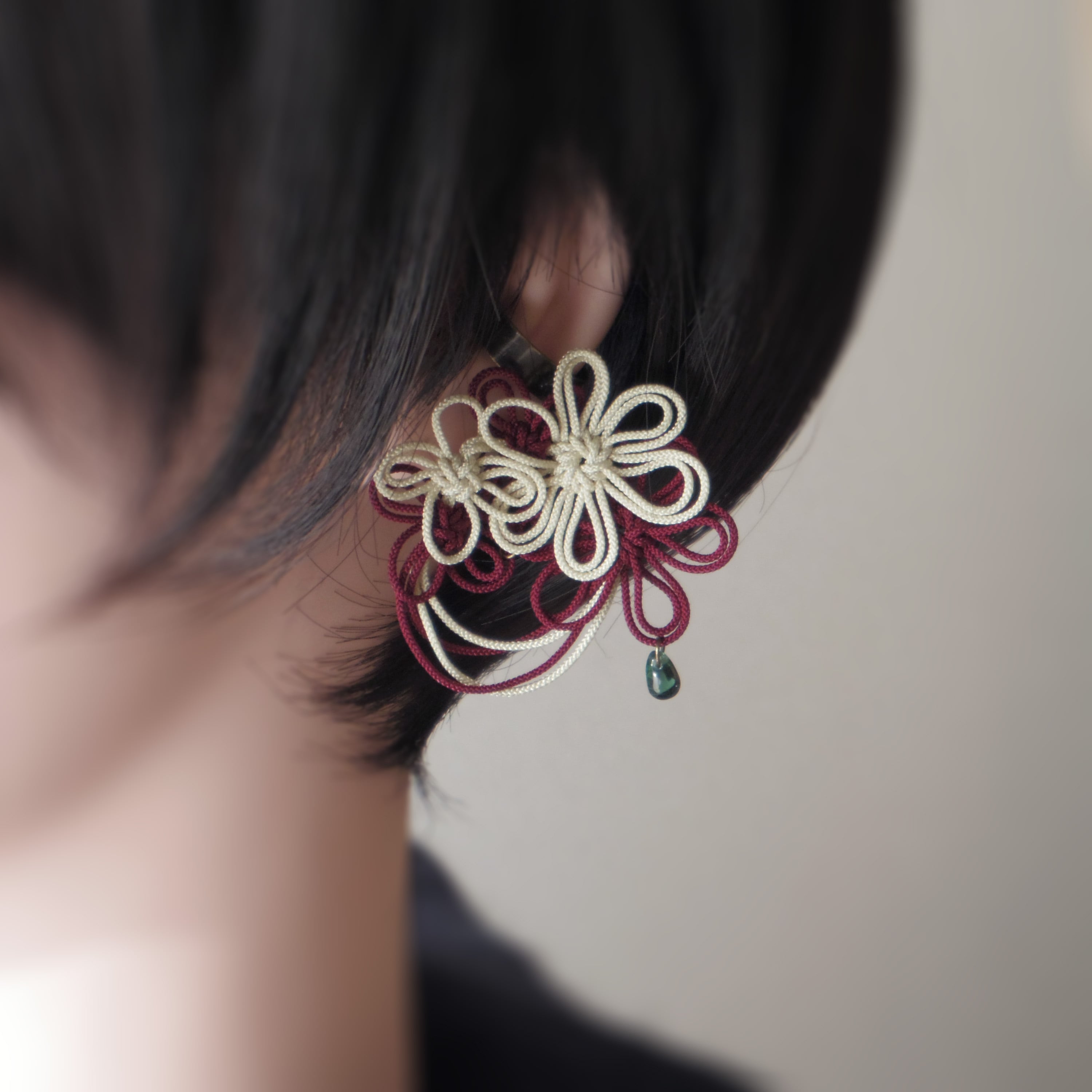 ☆このアクセサリーでは「飾り結び」という技法を用いています。「水引」や「組紐」とは全く異なるものですのでご注意ください。