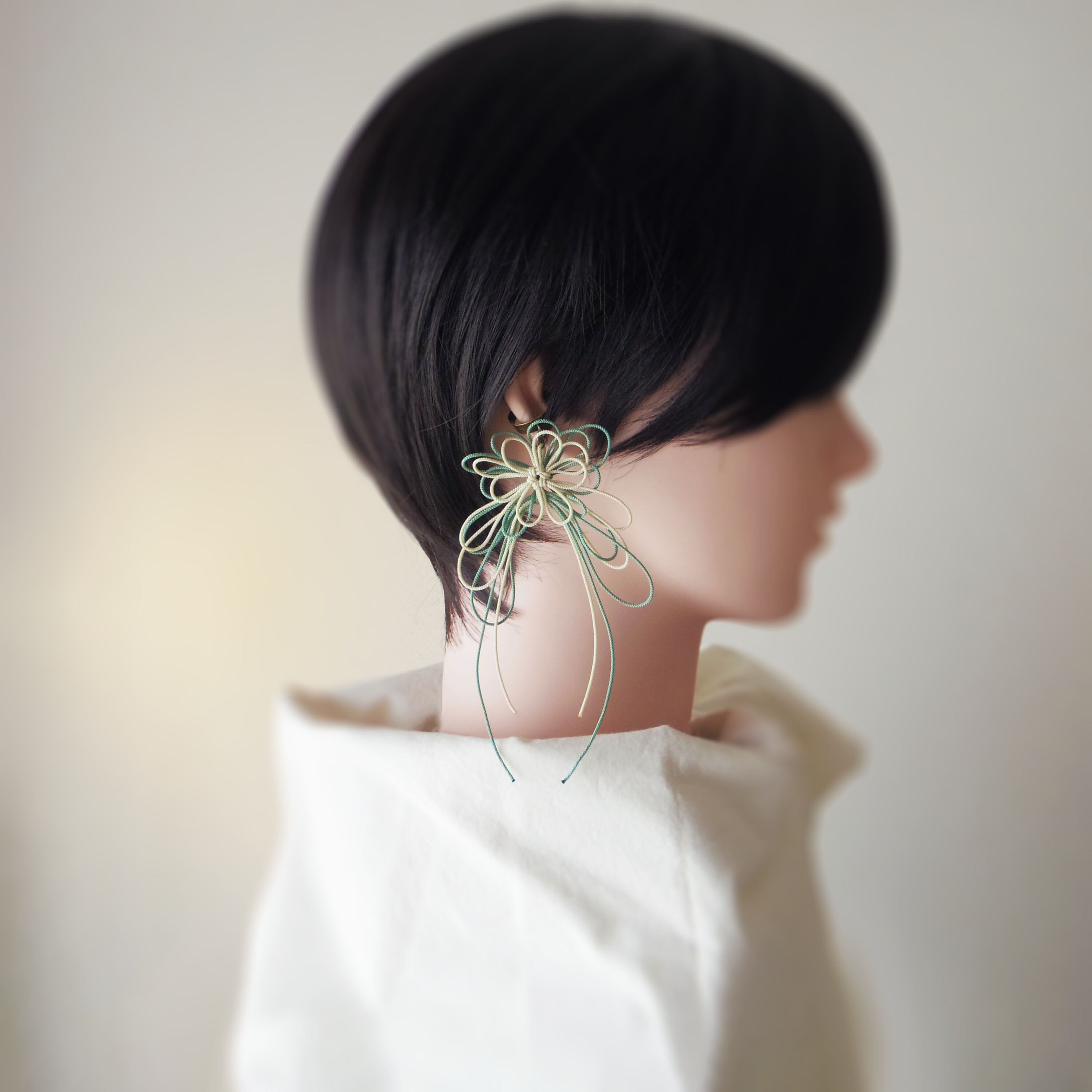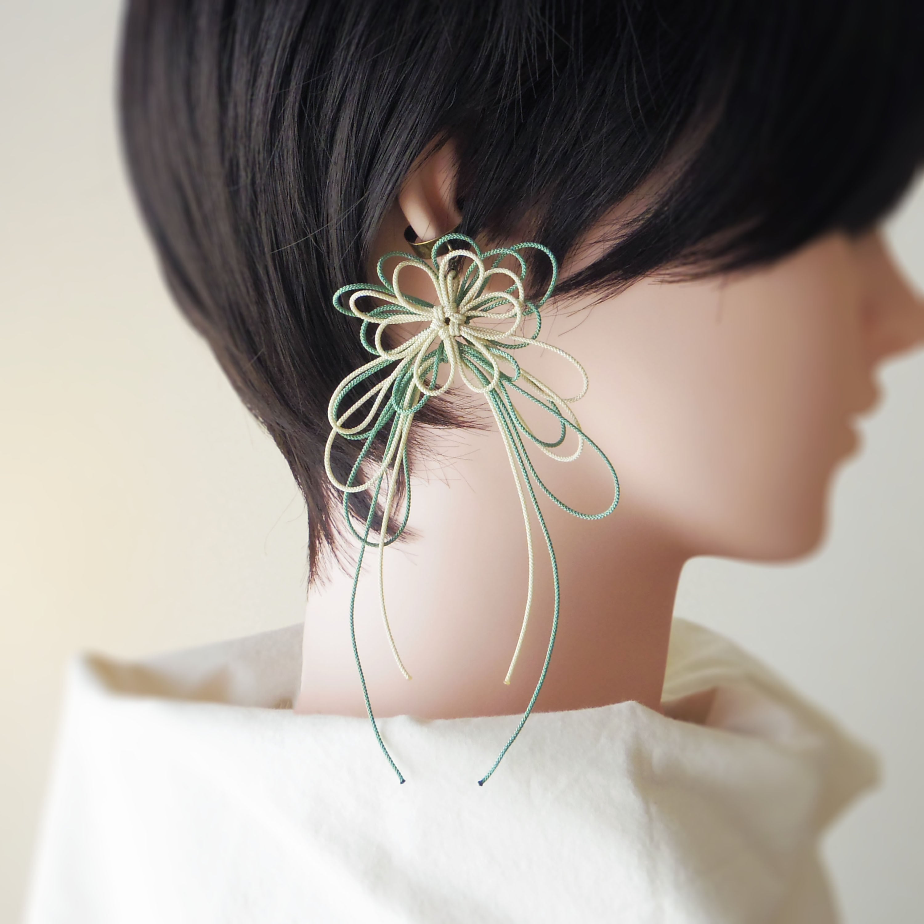 One-Sided Ear Cuff “Hibiki, Hi” (Ivory × Light Green)Main DescriptionDecorative knot one-sided ear cuff