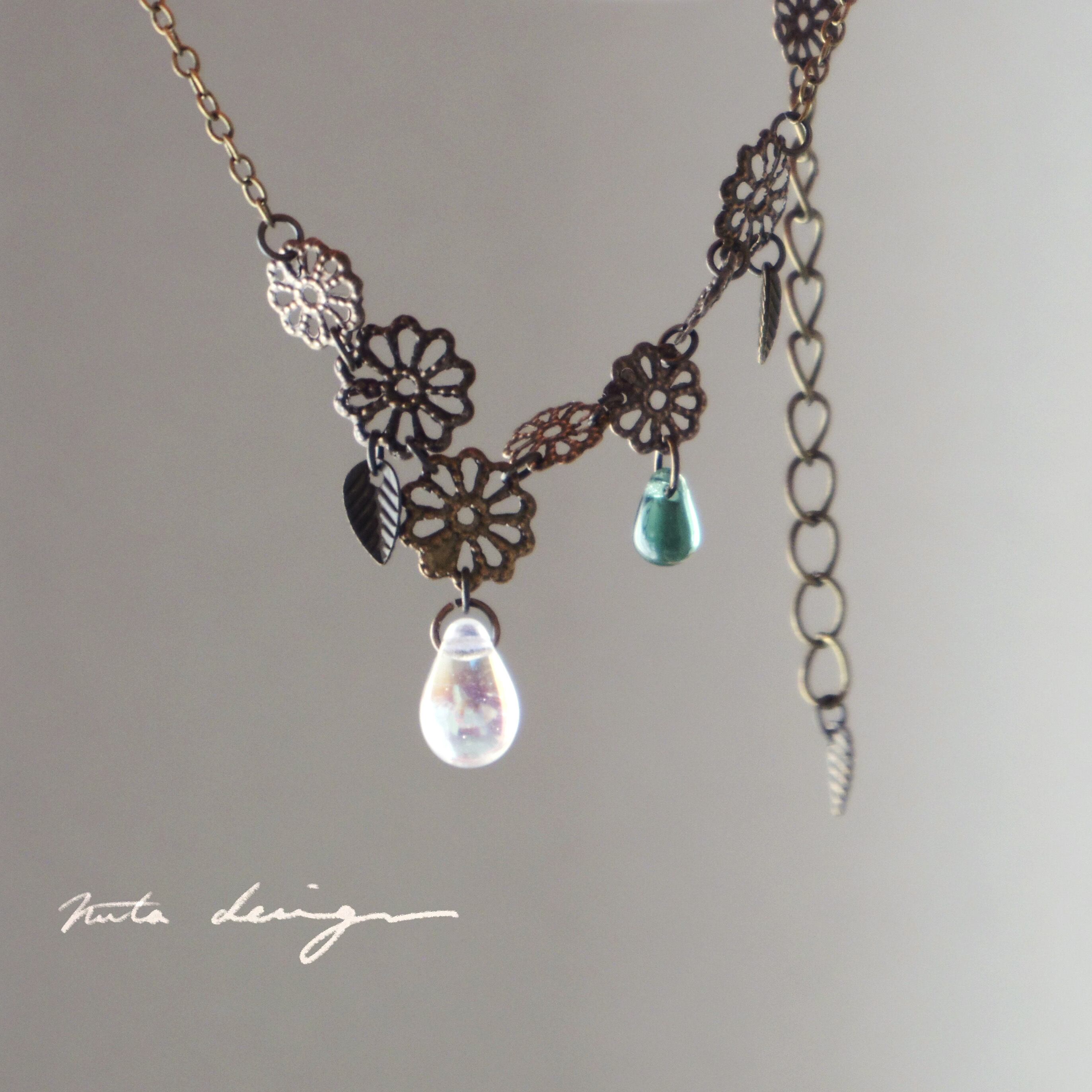 氷や水滴のある瞬間を捉えたようなクリアカラーのチェコガラスビーズが主役
