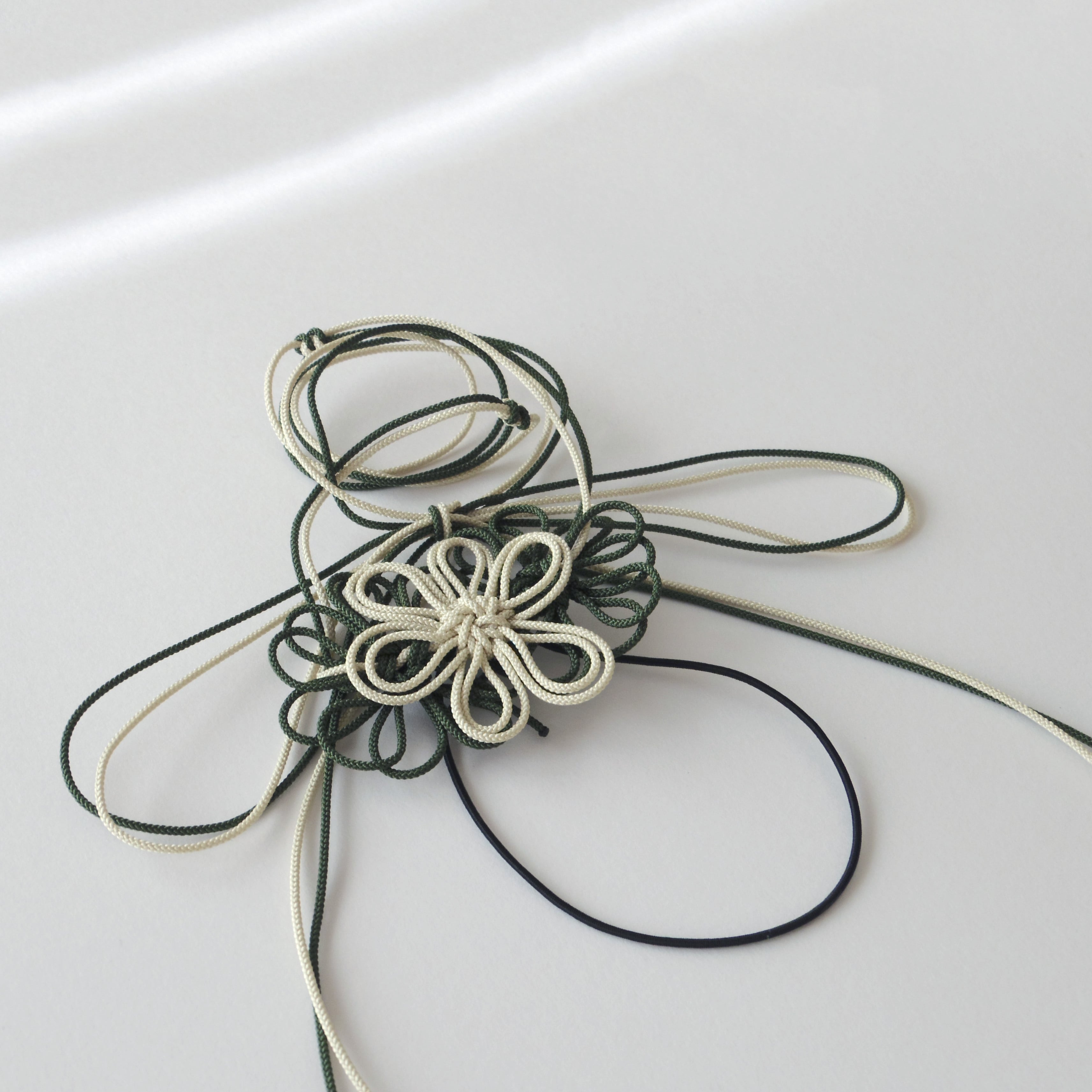 ※飾り結びはとても繊細です。着脱時はゴム部のみを引っ張るようにし、飾り結びに力を加えないよう充分にご注意ください※